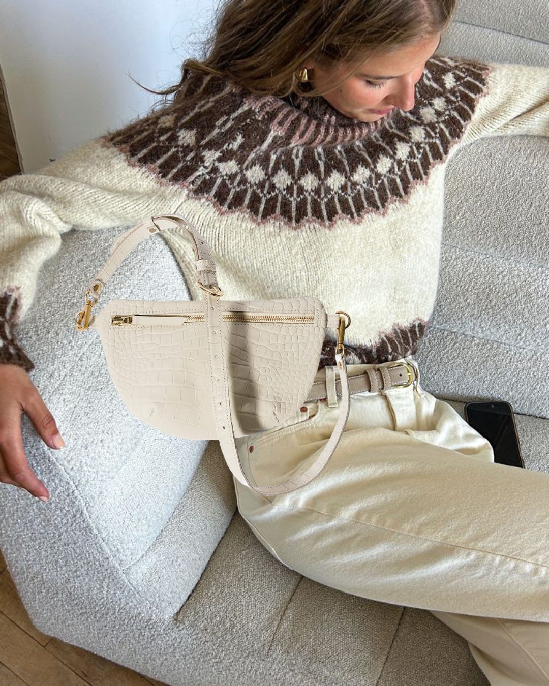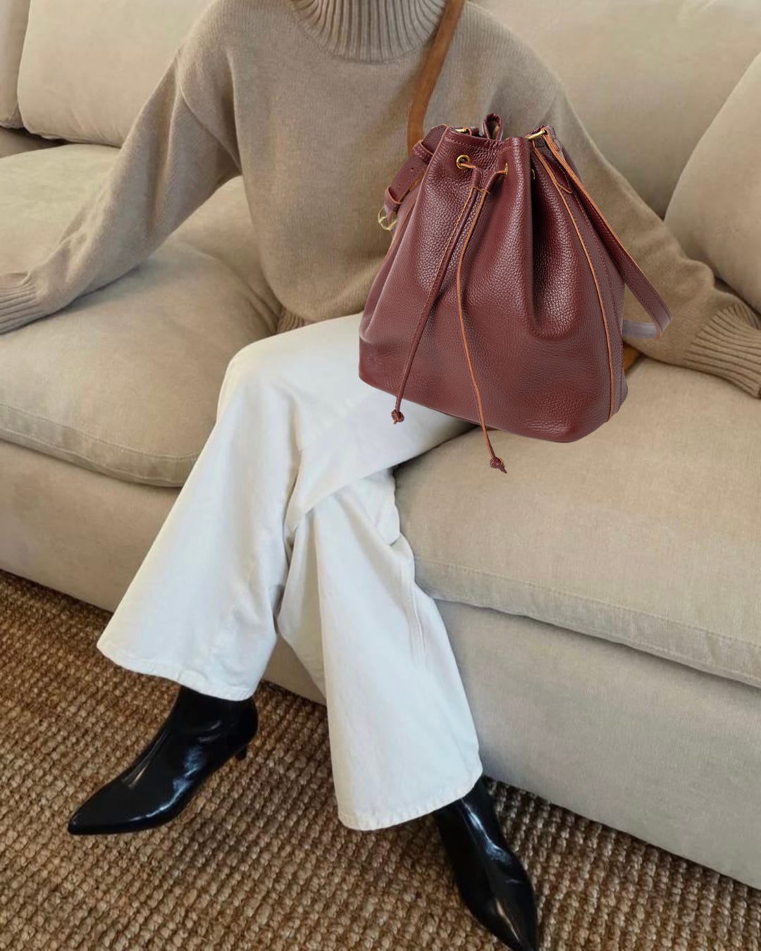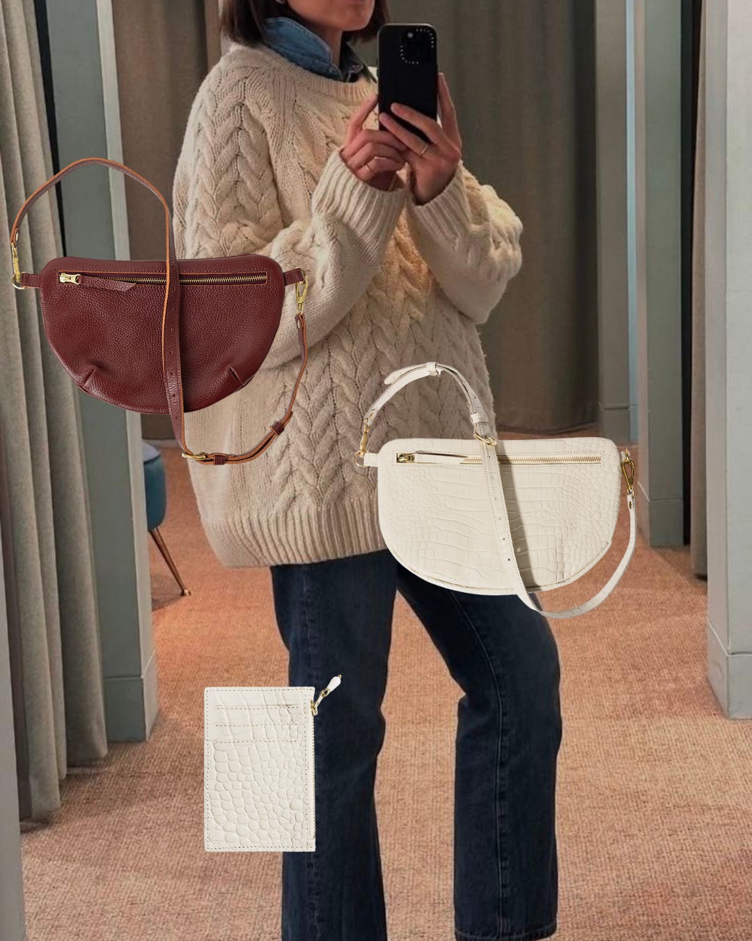Over on ABBY ALLEY, we just dropped our limited edition collection of Bordeaux and Ivory Croco leather bags, which are exactly the pop I need for this time of year. I’ll show you what I mean using some images from Pinterest of women in actual repeatable outfits.
